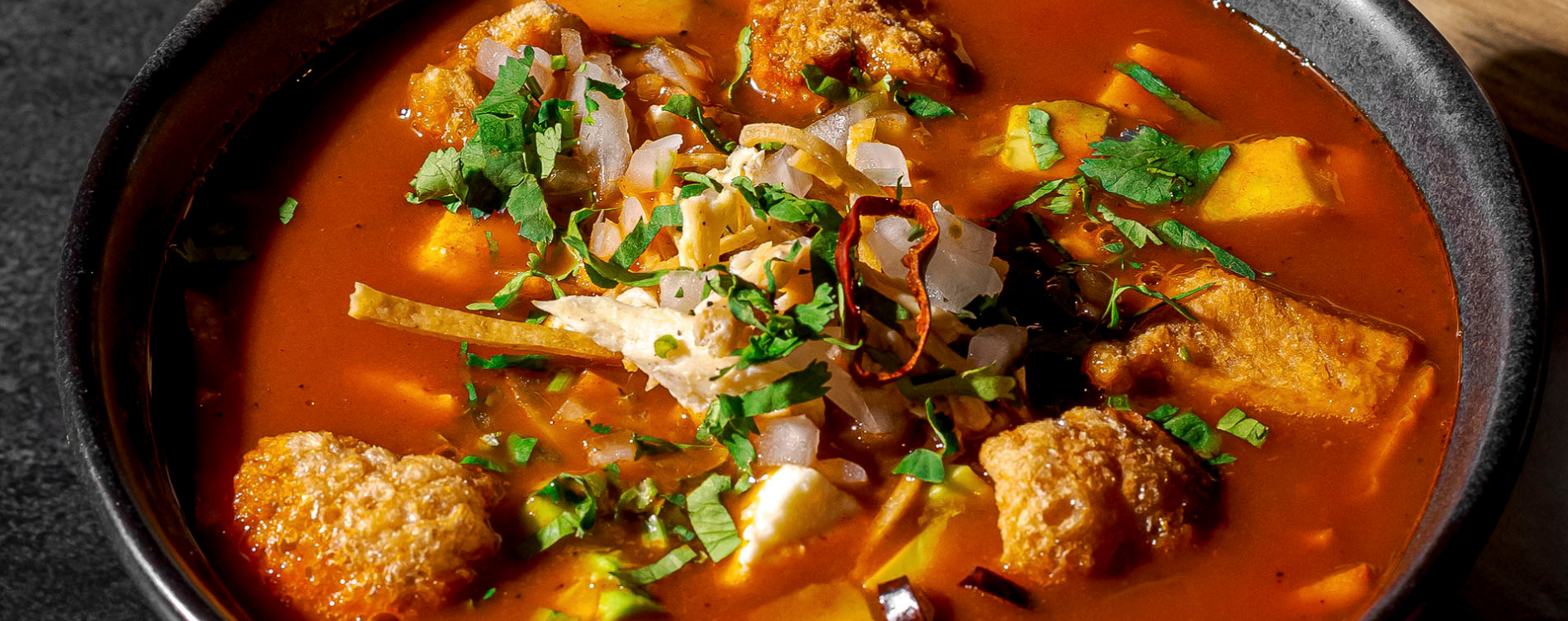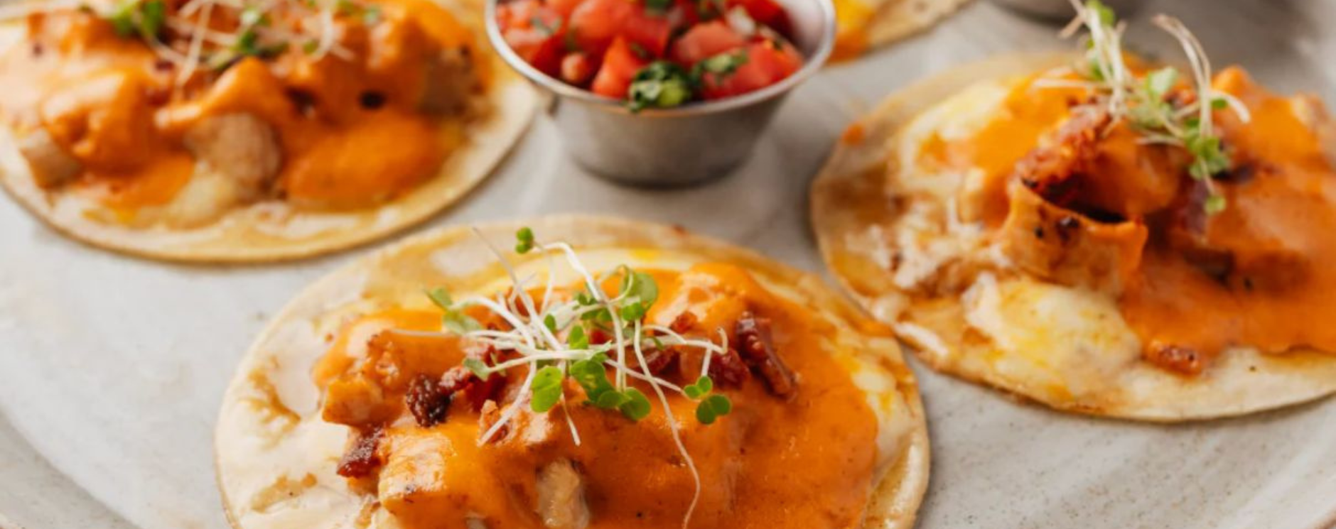 Pechuga de pollo bañada en crema, chipotle, tocino y queso. Servidos en tortilla de maíz.